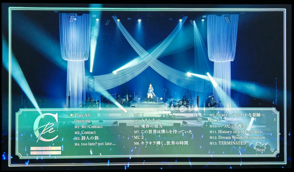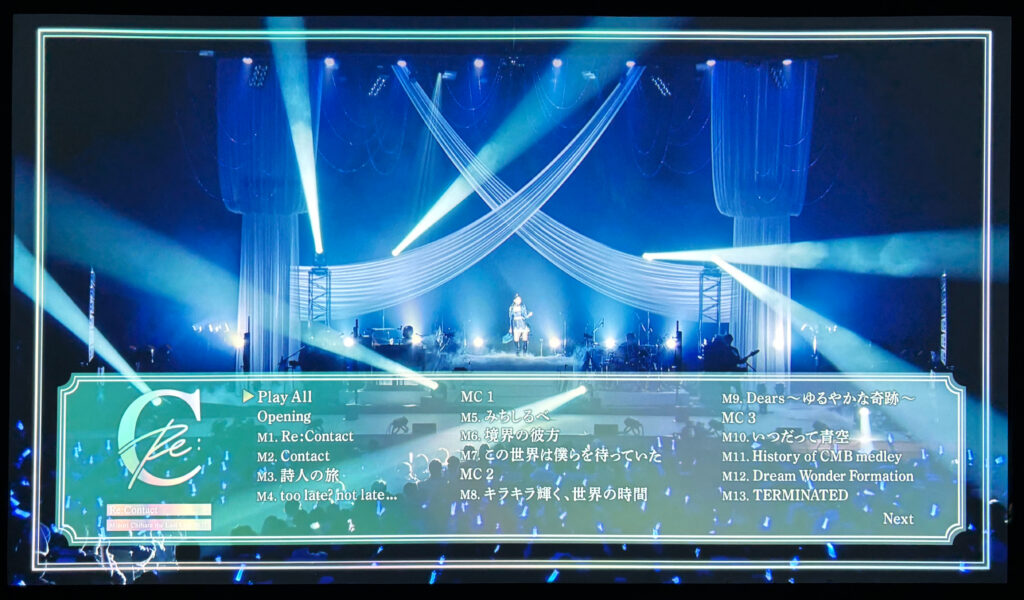 UBP-X800M2で再生した『Minori Chihara the Last Live 2021 ~Re:Contact~ [Blu-ray]』のメニュー画面