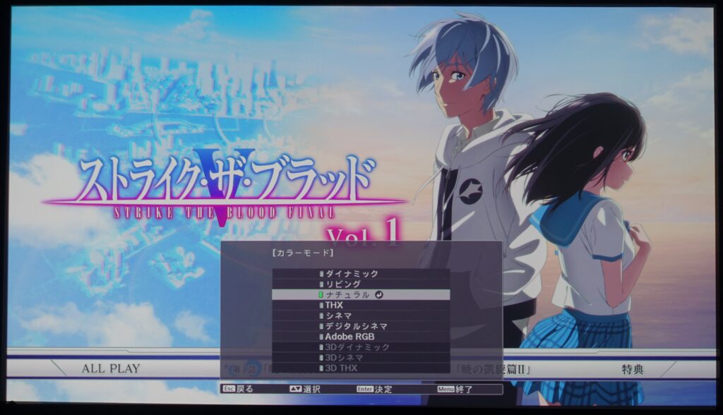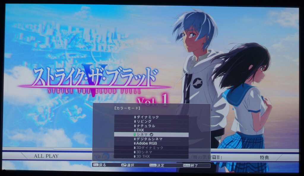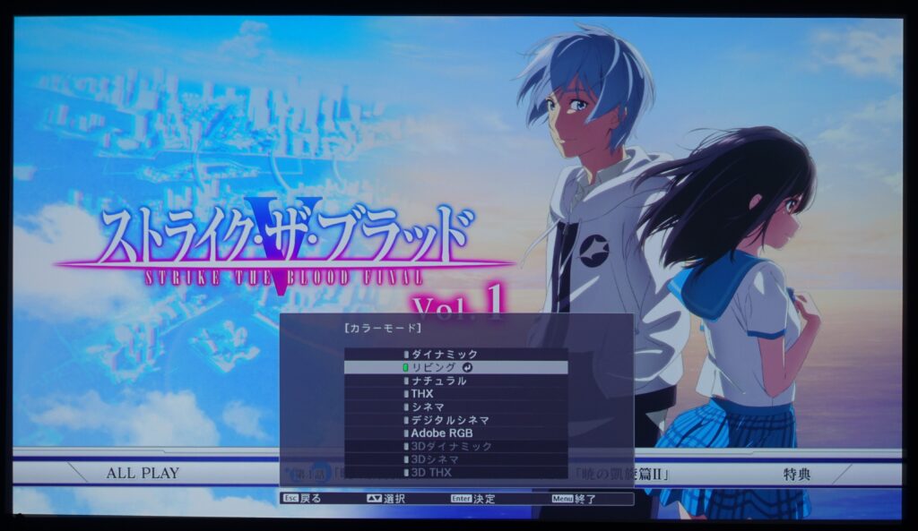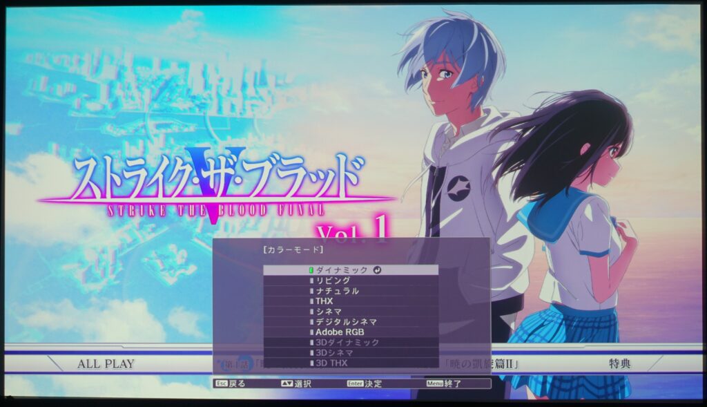 暗い部屋での視聴に向いている画質でメーカーが言うにはこのモードから色調整することをおススメされています。
