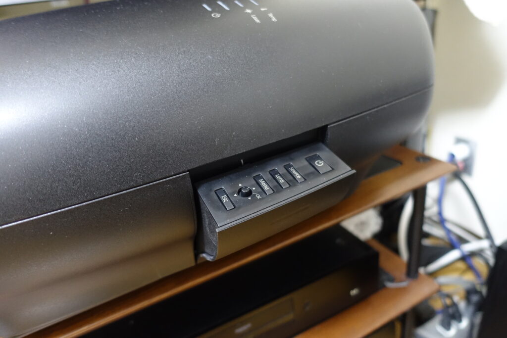 本体パネルの操作はここからできます。使わないときは収納できます。こういった工夫がしっかりしているだけではなく、使いやすさもあるので、さすがのエプソンです。