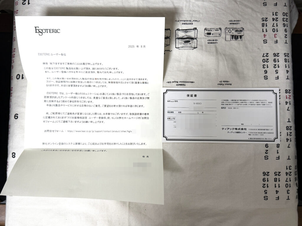【保証書】メーカー5年保証です。ファーストオーナーからお譲りいただく場合はエソテリックに連絡すると保証も譲渡可能です。