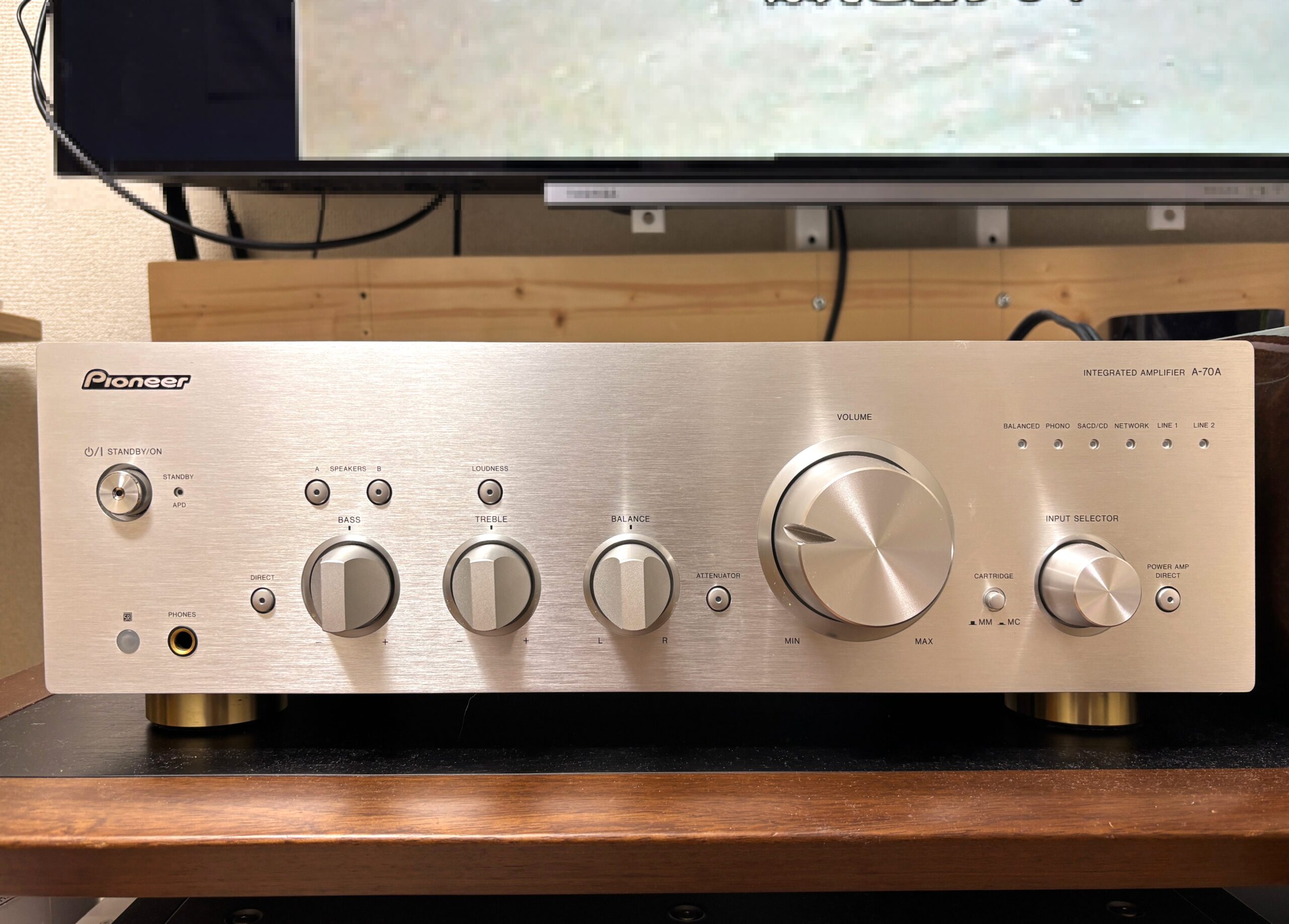 パイオニアのAシリーズ。最初はA-70から登場し、A-70A、A-70DAという順番で販売されてきました。パイオニアというメーカーが一度なくなってから後継機が登場しておらず、実質的に最終モデルという位置づけではないでしょうか。そんな個体がリモコン&電源ケーブルなしの状態で入手できましたのでレビューしてみます。